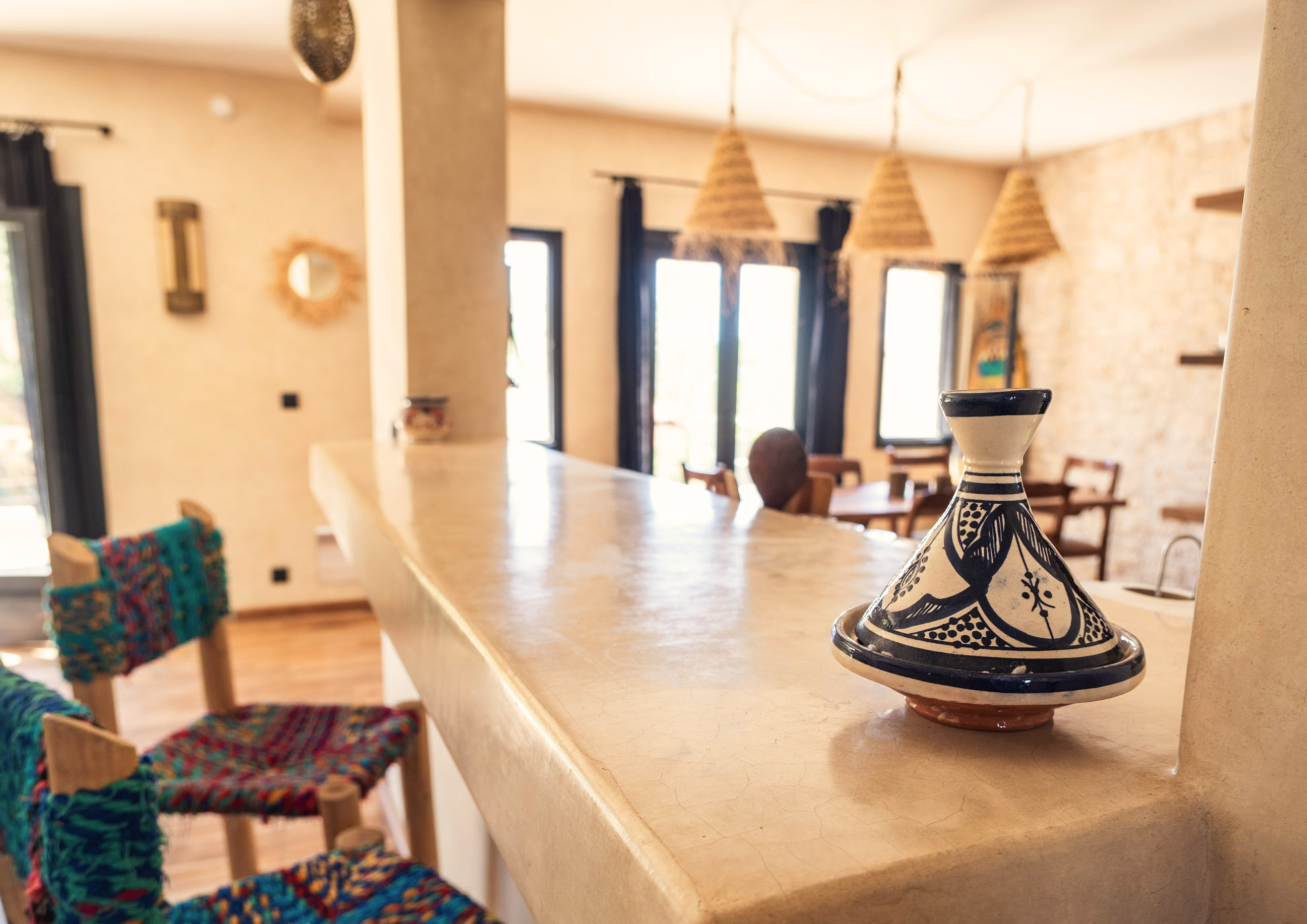 Located in the heart of the peaceful little village of Aït Yassine, just a few kilometers from Essaouira, Villa Sunset is a true haven of peace. Here, time slows down: between the serenity of the place, the gentle climate and the friendliness of the inhabitants, everything invites you to recharge.